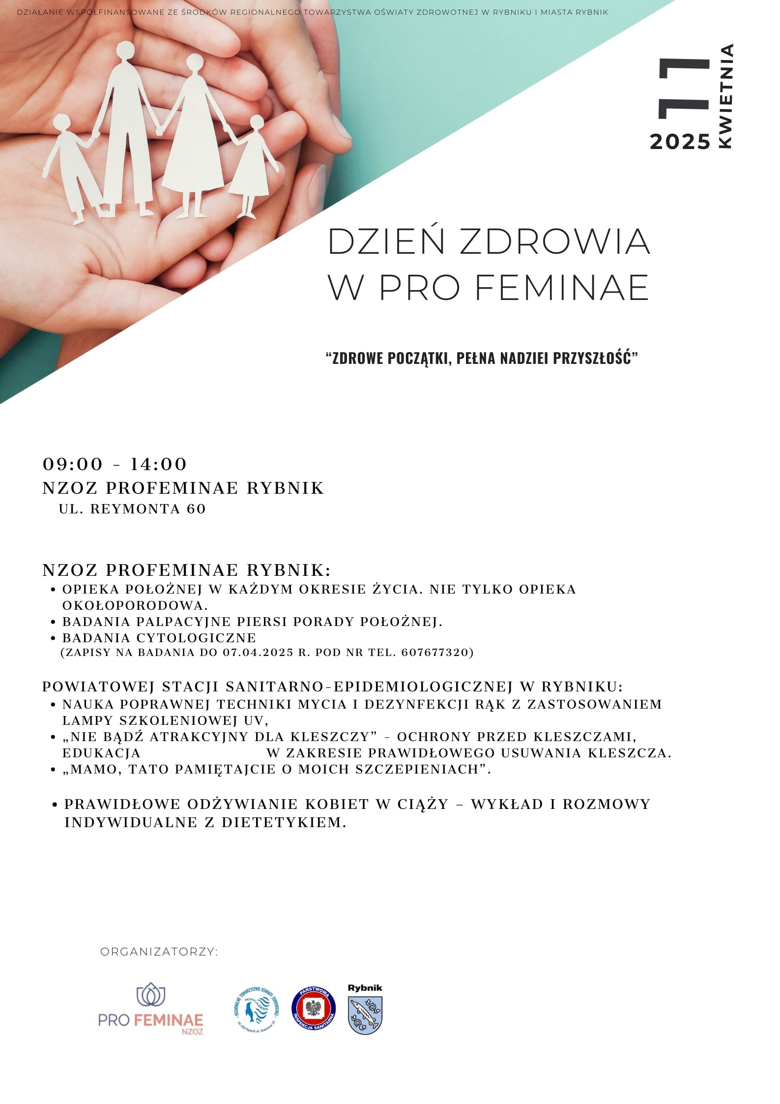 Chętne matki/opiekunowie i dziewczęta będą mogły wziąć udział w warsztatach w gabinecie ginekologicznym w NZOZ PRO FEMINAE S.C. w Rybniku ul. Reymonta 60.