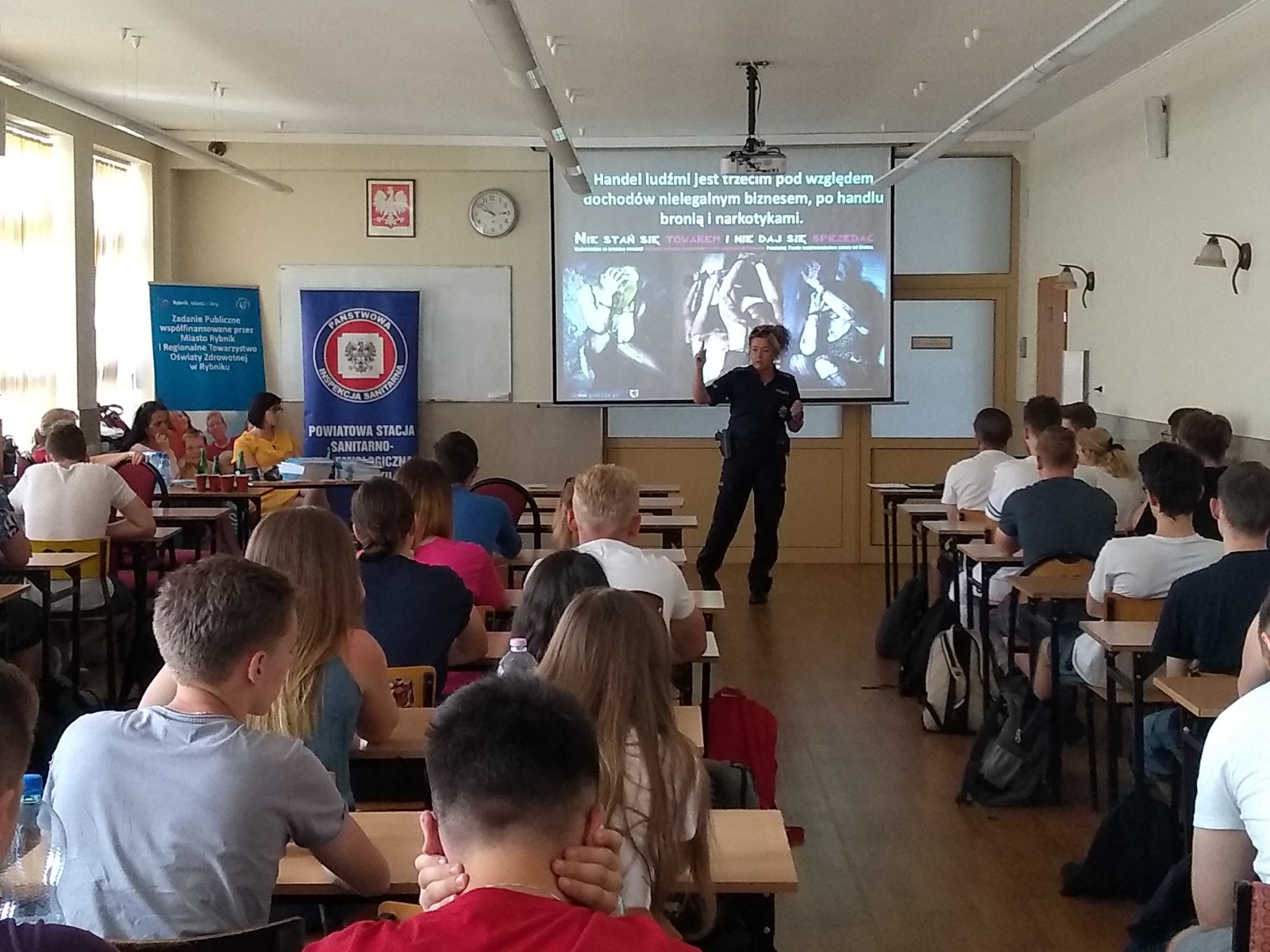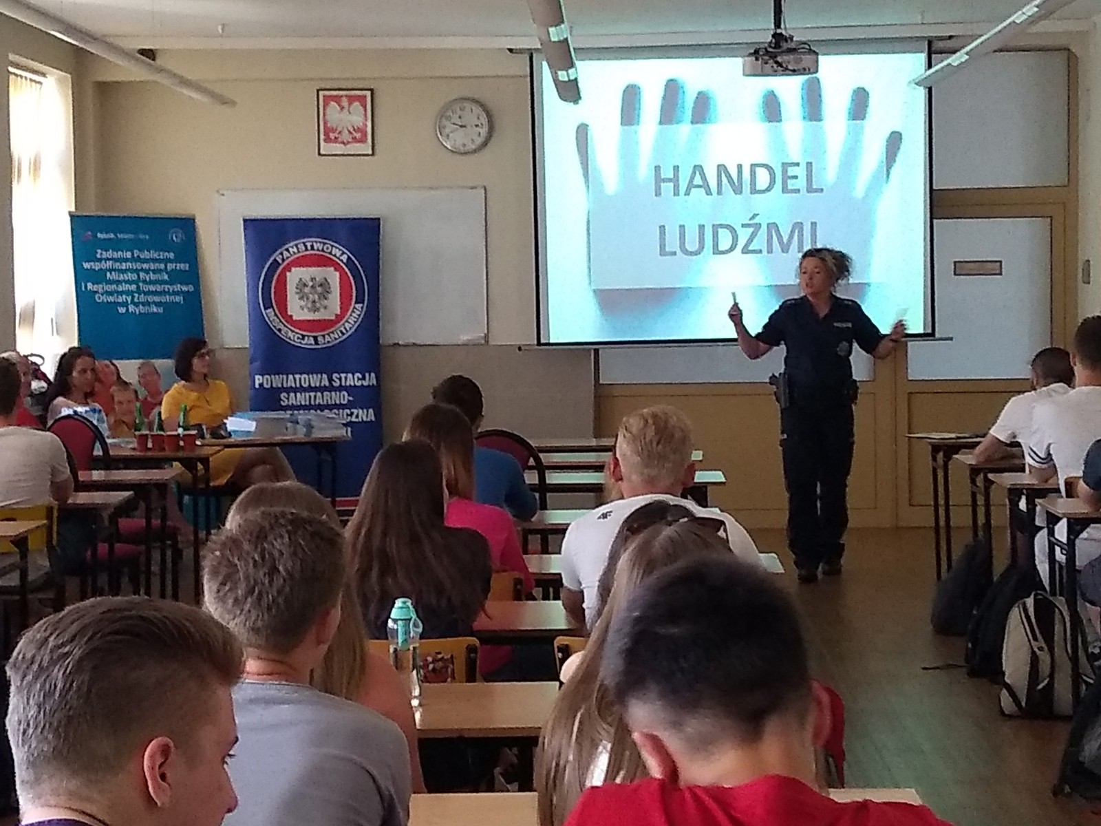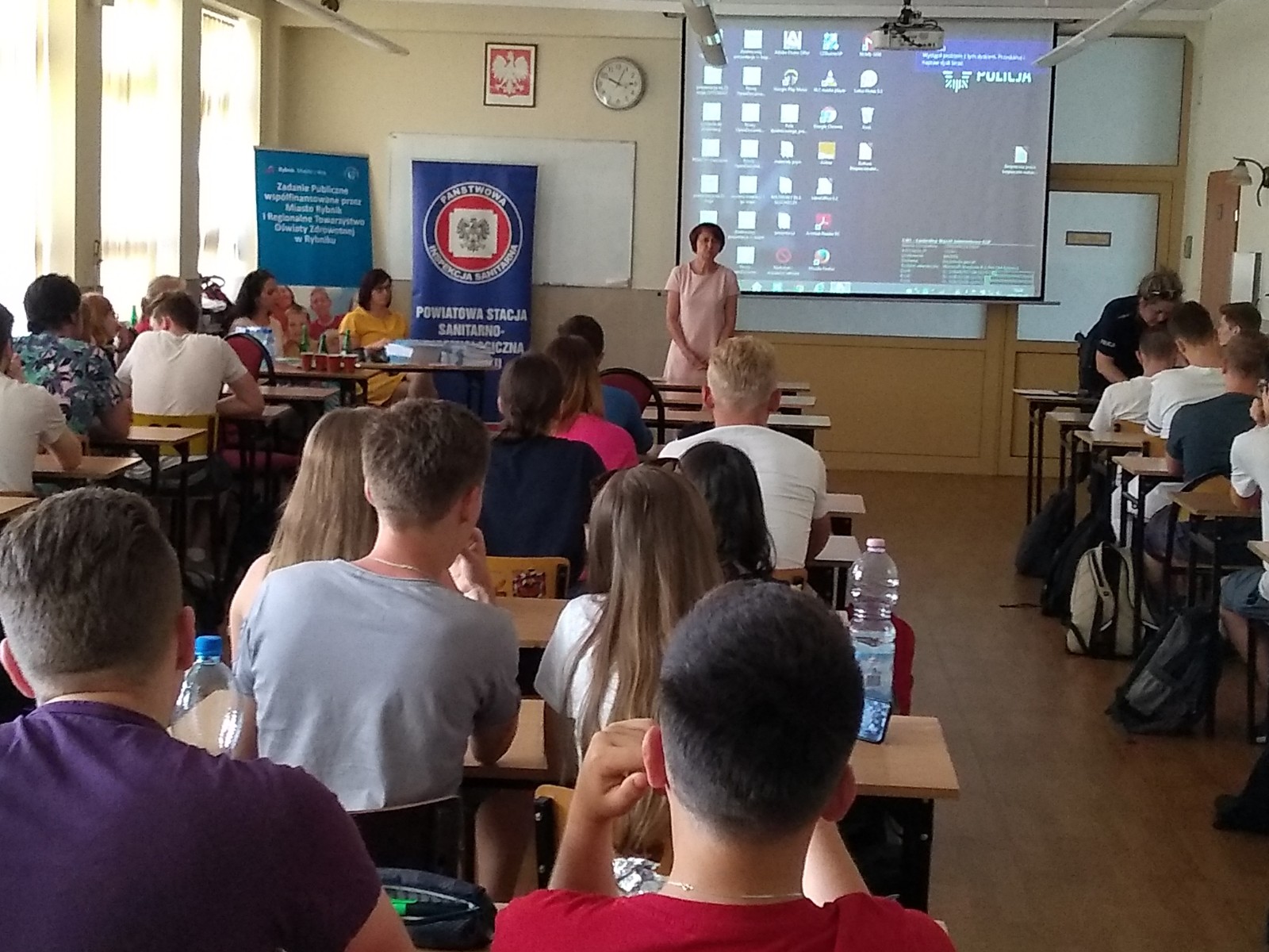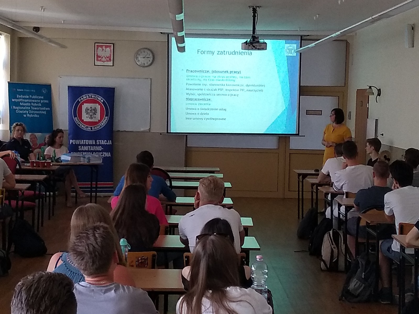 Podczas spotkania młodzi ludzie mogli dowiedzieć się, czego mogą oczekiwać od pracodawcy zatrudniającego ich w okresie wakacji. Poruszono także kwestię wyjazdów do pracy sezonowej za granicą, podleganiu ubezpieczeniom, a także płacy minimalnej, jaka się w takiej sytuacji należy osobom pracującym poza granicami kraju. Dużo miejsca poświęcono zachowaniu młodych ludzi w czasie wakacji. Tutaj pracownicy Policji, PSSE w Rybniku oraz psycholog Mariola Kujańska zwracali uwagę na problemy z dopalaczami, alkoholem, cyberprzemocą, zachowaniami seksualnymi, starkingiem, handlem ludźmi czy zdrowotnymi następstwami zachowań, które z pozoru nie budzą zagrożeń. Ponadto przestrzegano przed zbytnim zaufaniem do obcych, ale też przed zaufaniem do tych, których – wydawałoby – się dobrze znają: kolegów, koleżanek. Spotkanie zorganizowane było z inicjatywy Regionalnego Towarzystw Oświaty Zdrowotnej w Rybniku oraz Powiatowej Stacji Sanitarno-Epidemiologicznej w Rybniku. Do jego udziału zaproszono także rybnicki Oddziału ZUS, Państwową Inspekcję Pracy i Policję oraz Niepubliczną Przychodnię Psychologiczno-Pedagogiczną w Rybniku. W dwóch turach szkolenia wzięło udział 120 uczniów.