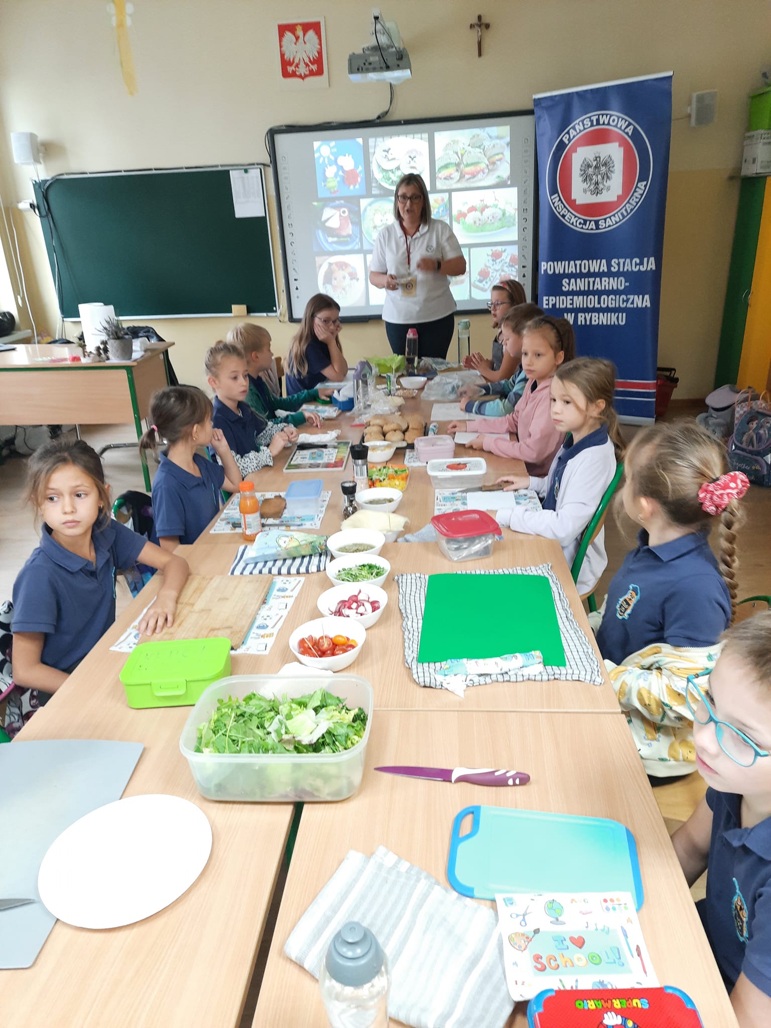 Klasa 8c brała udział w warsztatach "Tak - trzymam formę" realizowane w ramach ogólnopolskiego programu edukacyjnego Trzymam Formę. Zadanie publiczne współfinansowane ze środków Regionalnego Towarzystwa Oświaty Zdrowotnej w Rybniku oraz miasta Rybnika. Kreatywność młodzieży nawet w robieniu tak prostej rzeczy jakiej są zdrowe kanapki nie miała ograniczeń.